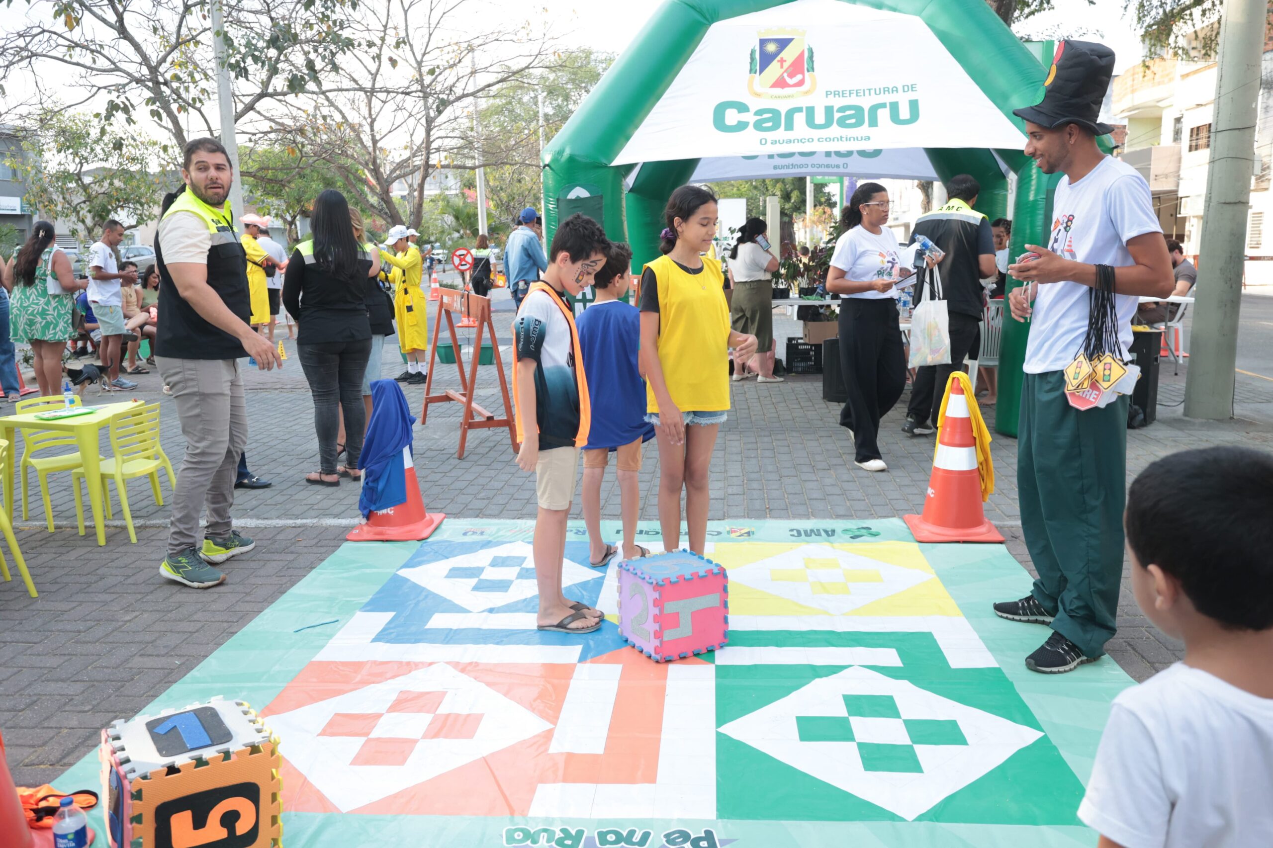 A Prefeitura de Caruaru, por meio da Autarquia de Mobilidade (AMC), promoveu, na tarde desse domingo (30), na Via Parque I (em frente ao INSS) a terceira edição do “Pé na Rua”. O projeto é voltado para crianças da primeira infância (até os seis anos) e tem o objetivo de, por meio do aprendizado sobre o trânsito, resgatar as brincadeiras infantis ao ar livre, utilizando os espaços públicos de maneira saudável, também com o intuito de reduzir o tempo que as crianças passam diante das telas.
