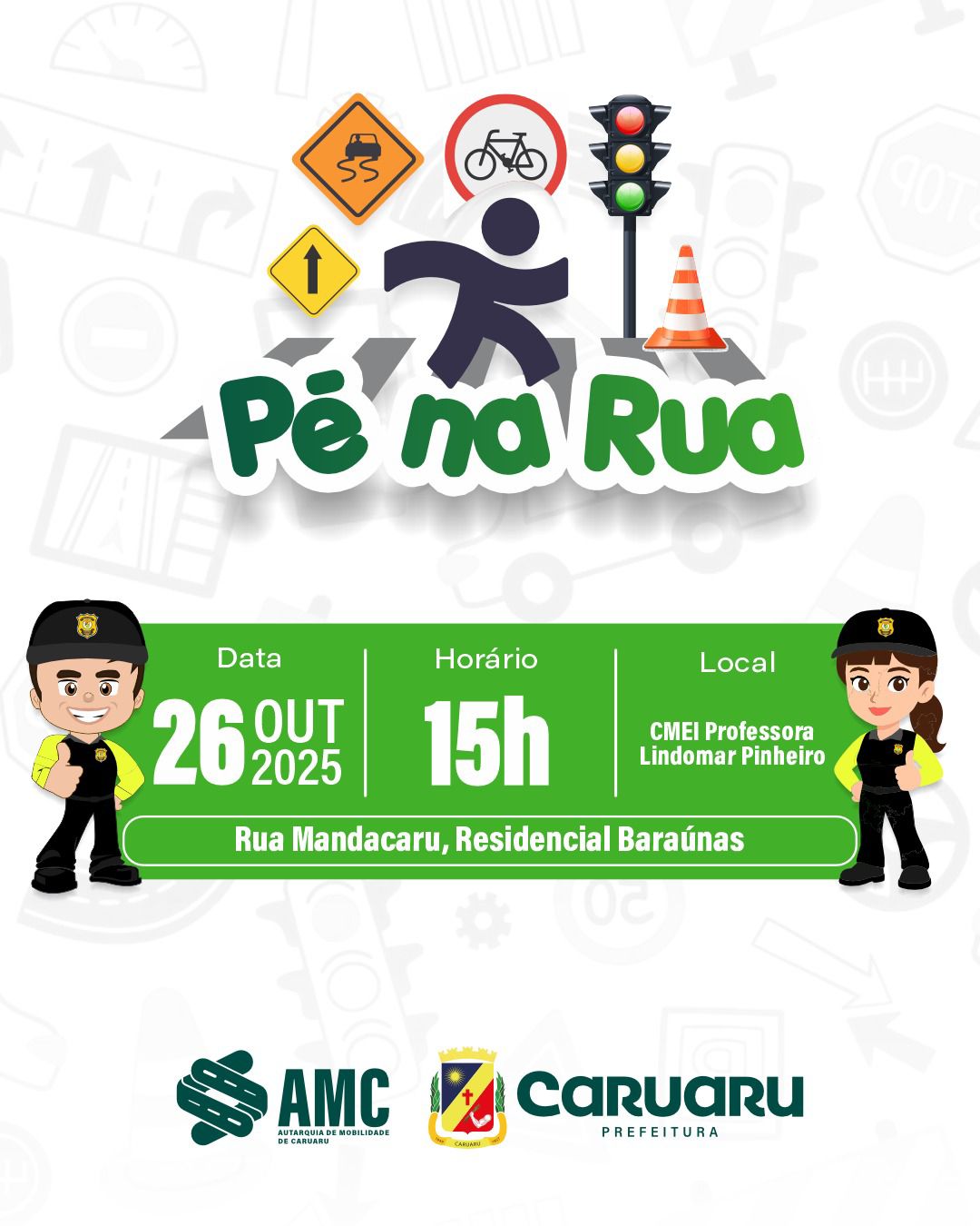 A Prefeitura de Caruaru, por meio da Autarquia de Mobilidade (AMC) realiza, neste domingo (26), mais uma edição do projeto Pé na Rua. O evento terá início a partir das 15h, no CMEI Professora Lindomar Pinheiro, localizado na rua Mandacaru, no Residencial Baraúnas.