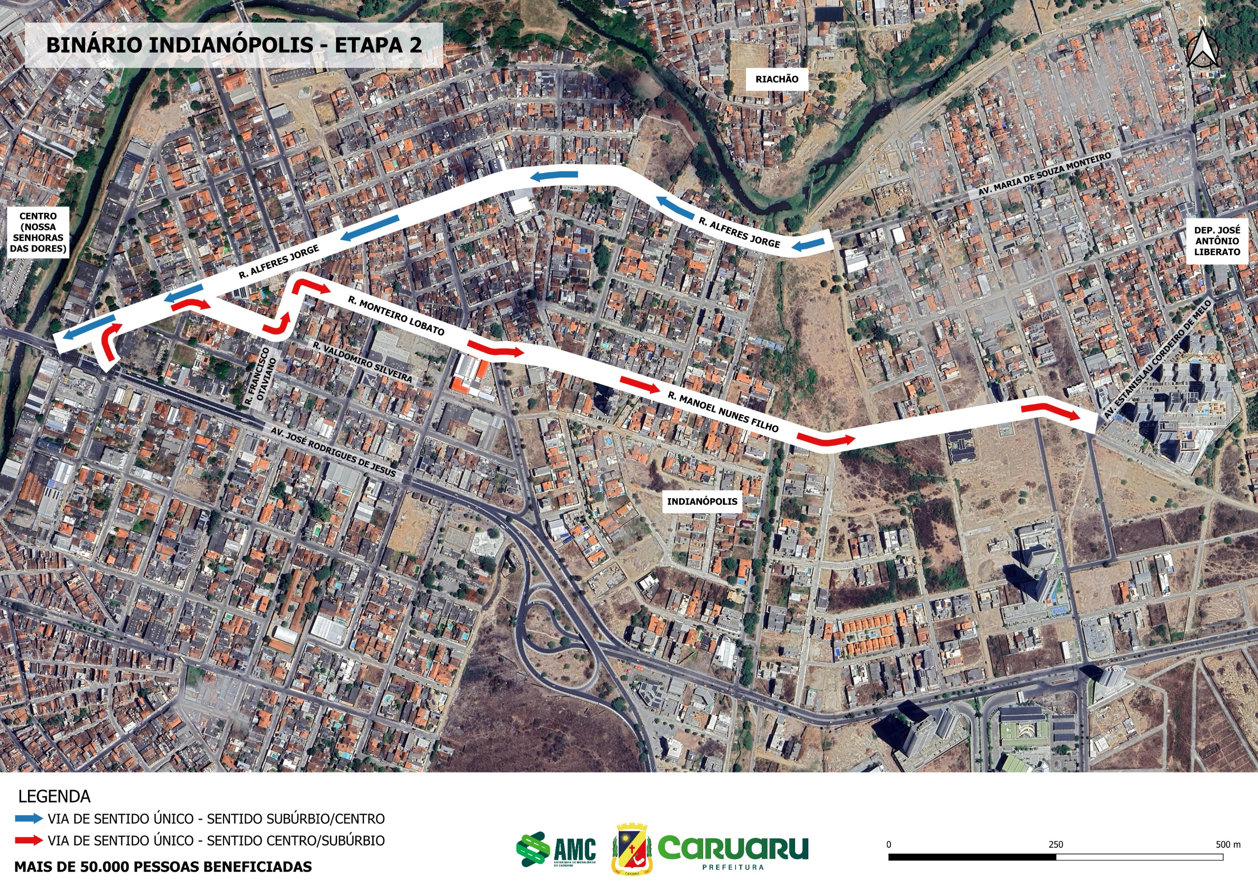 O projeto beneficiará diretamente mais de 50 mil habitantes com redução de congestionamentos, melhoria da mobilidade urbana, aprimoramento do uso do espaço viário, redução de conflitos entre veículos, pedestres e ciclistas e aumento da segurança viária.